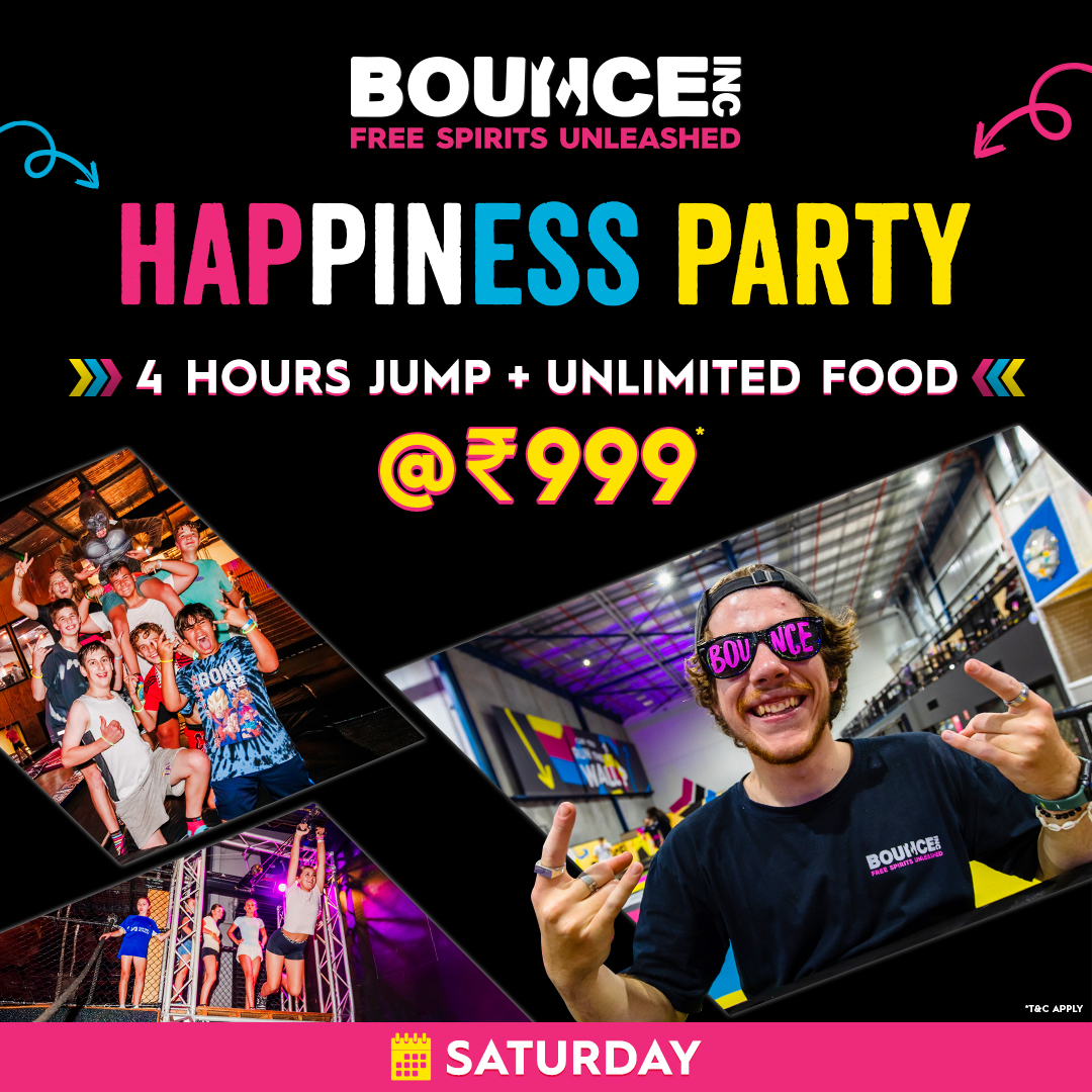 Gurugram venue – 7pm to 11pm - BOUNCE socks, lockers, shoes and other services are not included; payable separately.